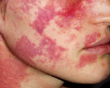 L’angiome plan (tache de vin) est le résultat des malformations vasculaires provoquées par une dilatation des vaisseaux du derme. Présent dès la naissance, l’angiome plan grandit avec l’enfant et dure toute la vie de l’individu. Son étendue est variable de même que sa couleur qui varie du rose pâle au rouge foncé ou pourpre.